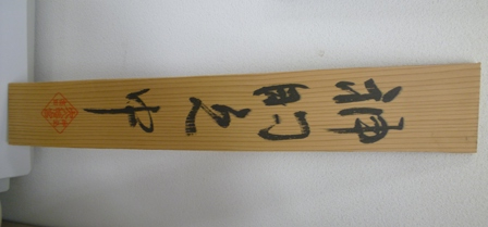 写真は、流鏑馬で矢が命中して割れた的のお札です。