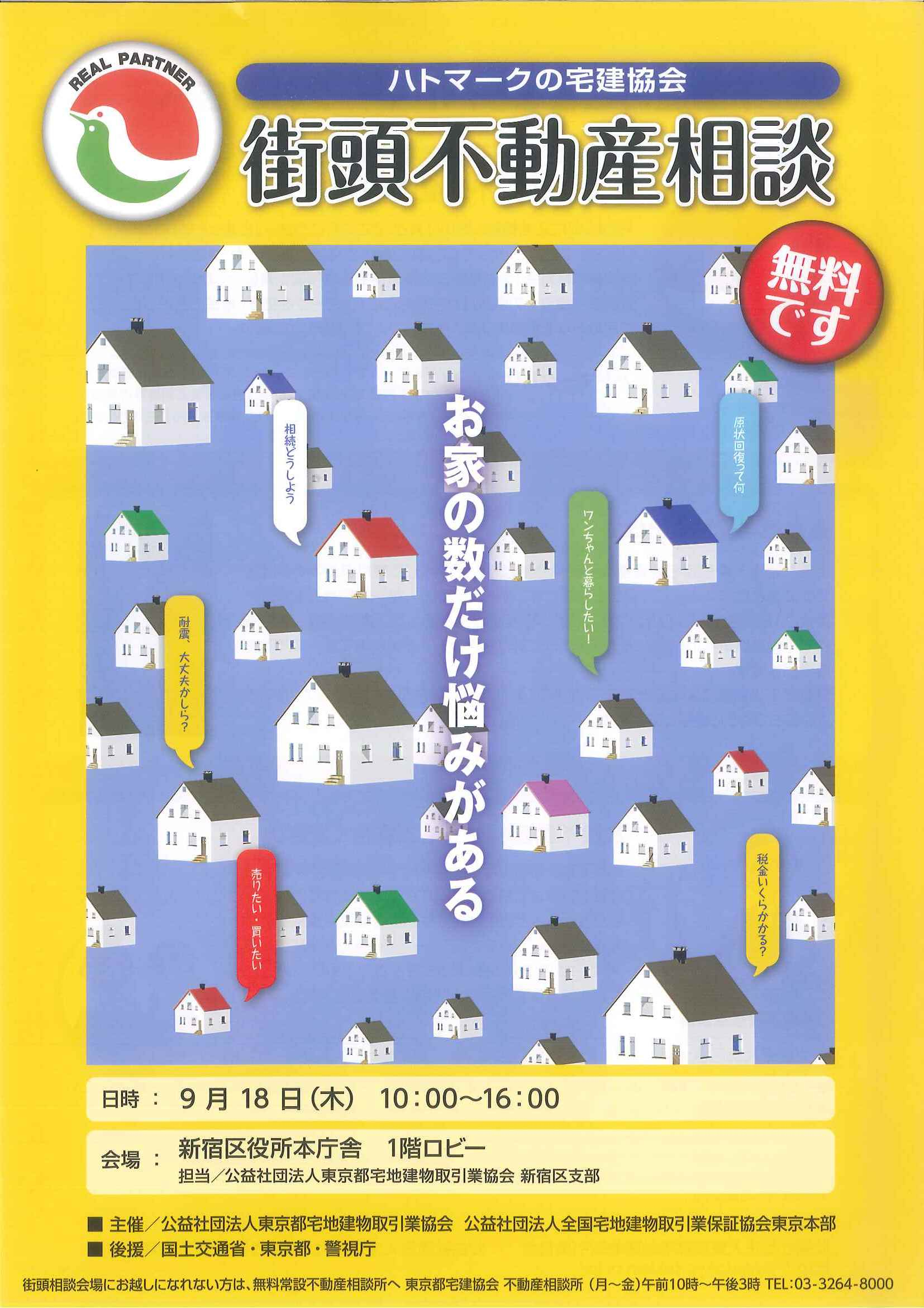 ハトのマークでおなじみの宅建協会によります街頭不動産相談が催されます。